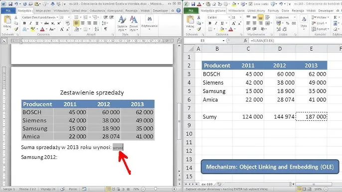 - Można zintegrować tabelę z Excela jako obiekt w dokumencie Word.