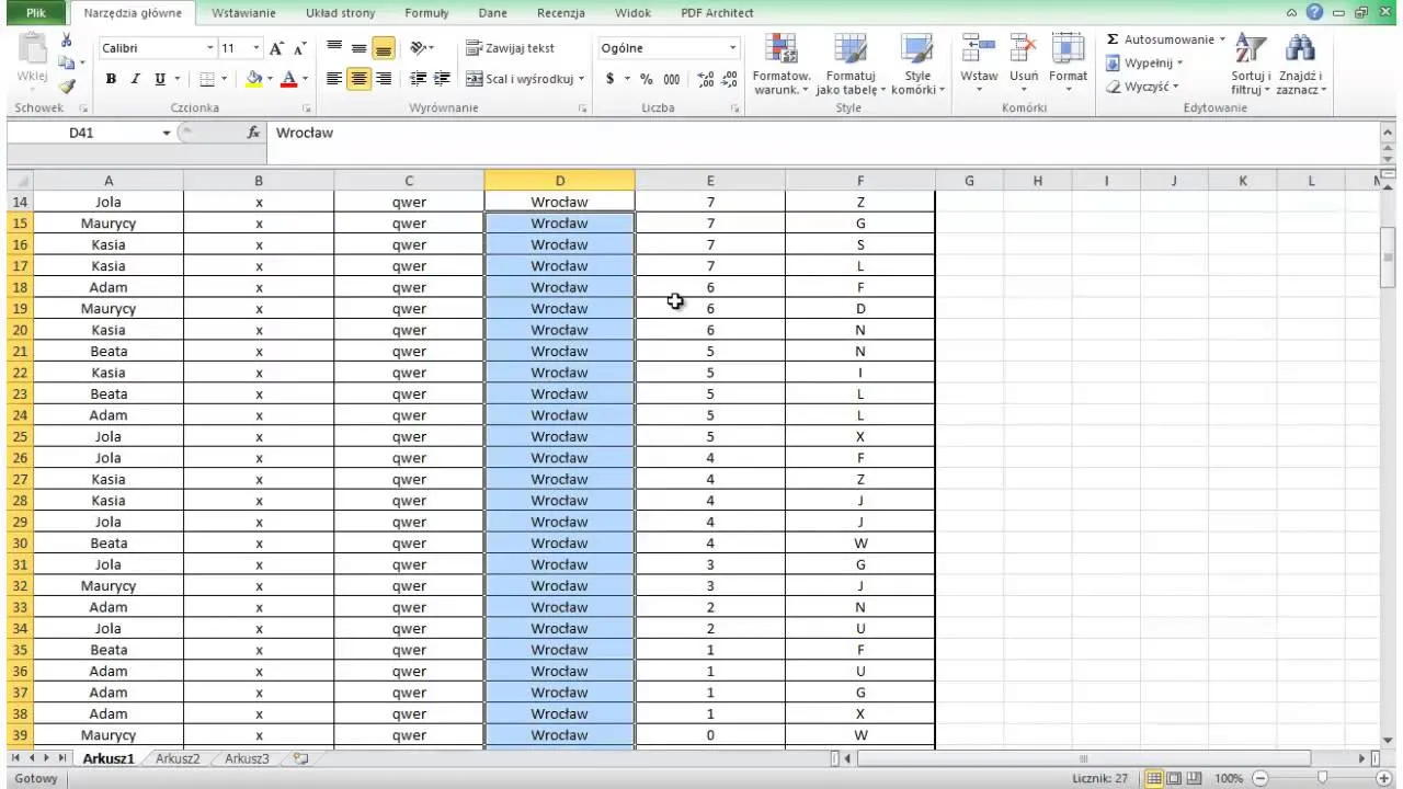Inną przydatną funkcją jest "Filtruj", która umożliwia wyświetlenie tylko tych danych, które spełniają określone kryteria. Dzięki temu możesz skupić się na konkretnych informacjach, a po zakończeniu analizy przywrócić pełny widok danych. Używanie tych narzędzi jest szczególnie pomocne, gdy pracujesz z dużymi zbiorami danych, które wymagają regularnego przeglądania i porządkowania.